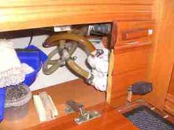 wurde oberhalb der Fußpumpe ein Zweiwegedrehventil eingebaut (s. Foto