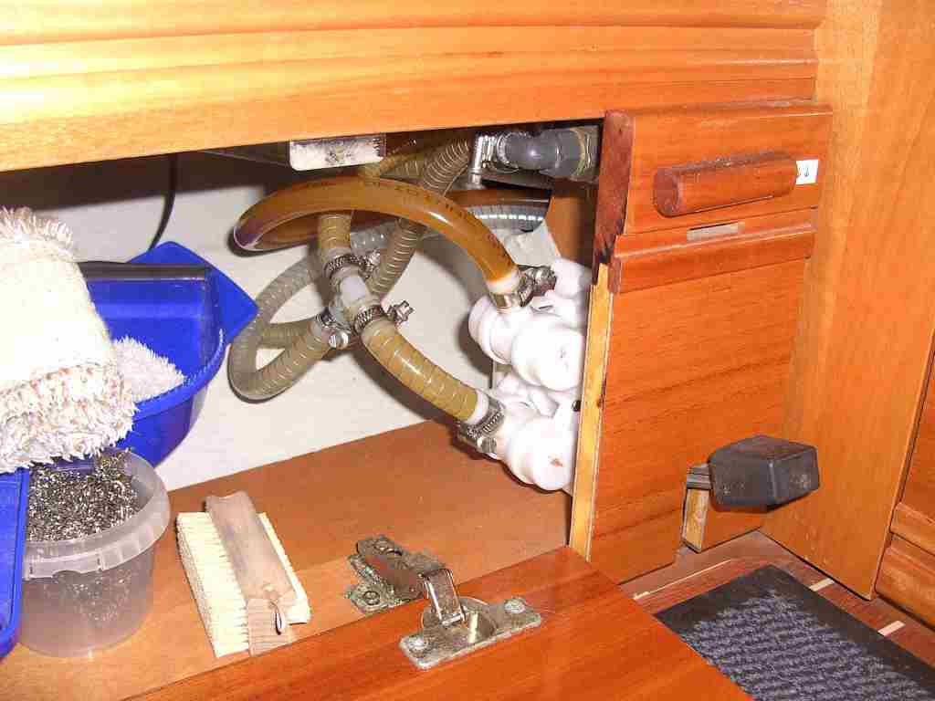 der Toilettenspülung wurde mit einem T-Stück Seewasser abgezweigt und bis zu